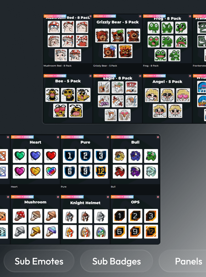 Unlock 15,000+ premium stream assets — including panels, profile pics, emotes, and badges.