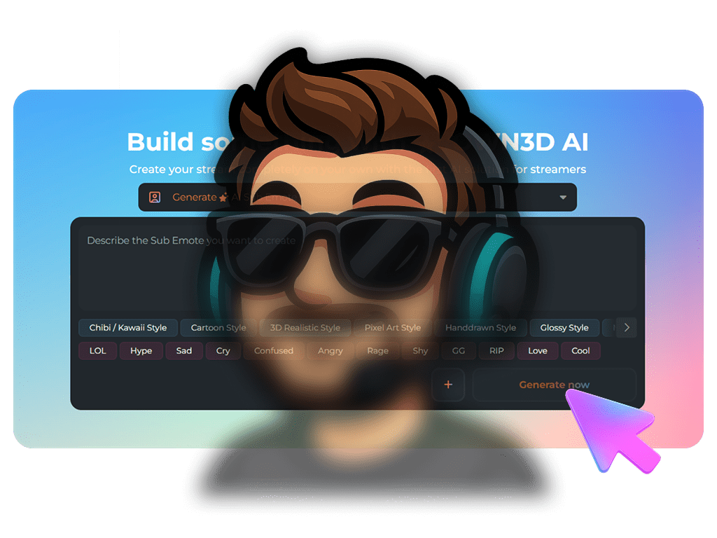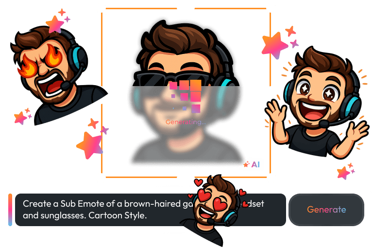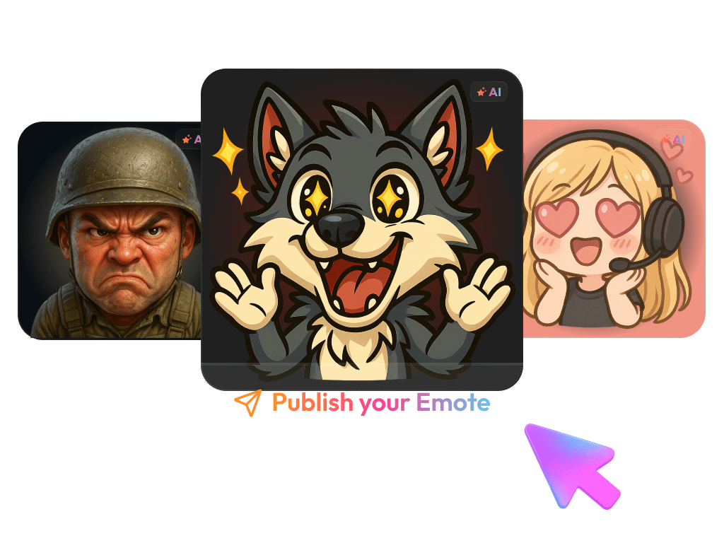 Create unique emotes in seconds with AI. Made for your stream, your style, and your community.