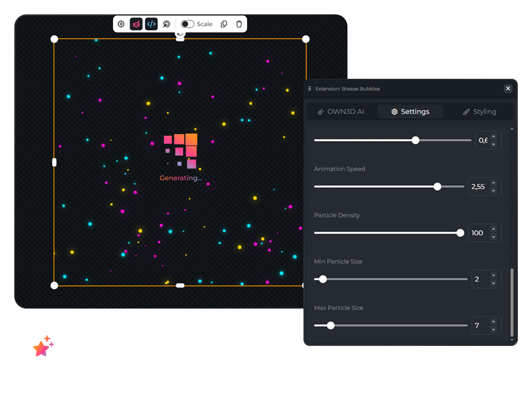 Finding the right widget among countless options can be overwhelming, but that’s where our AI Widget Maker steps in. Create exactly the widget you’re looking for, fully personalized to your style and stream, ready in minutes. Focus on your vision and let AI bring it to life.