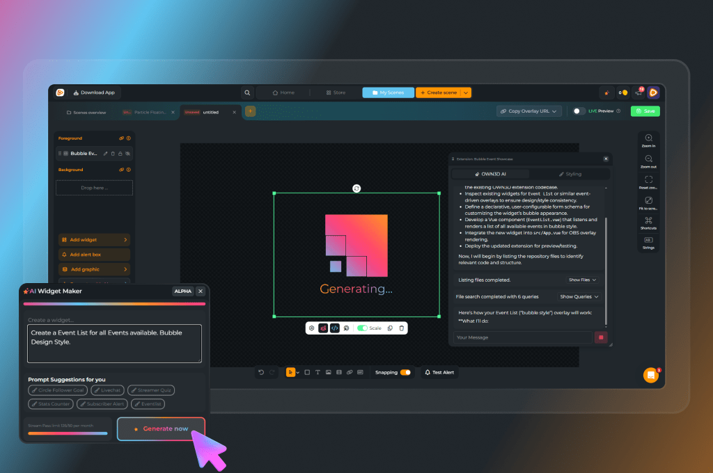 It’s an AI-powered tool that lets you create fully customized widgets for your stream in minutes. Just describe what you need, and AI builds it. No coding or design experience required.