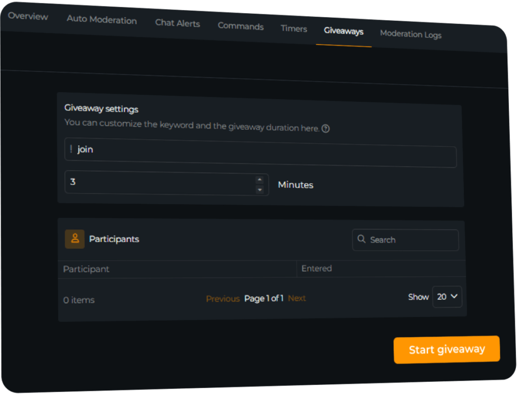 With the OWN3D Kick chatbot, you can run interactive giveaways that keep your viewers engaged and show appreciation to your most loyal fans.