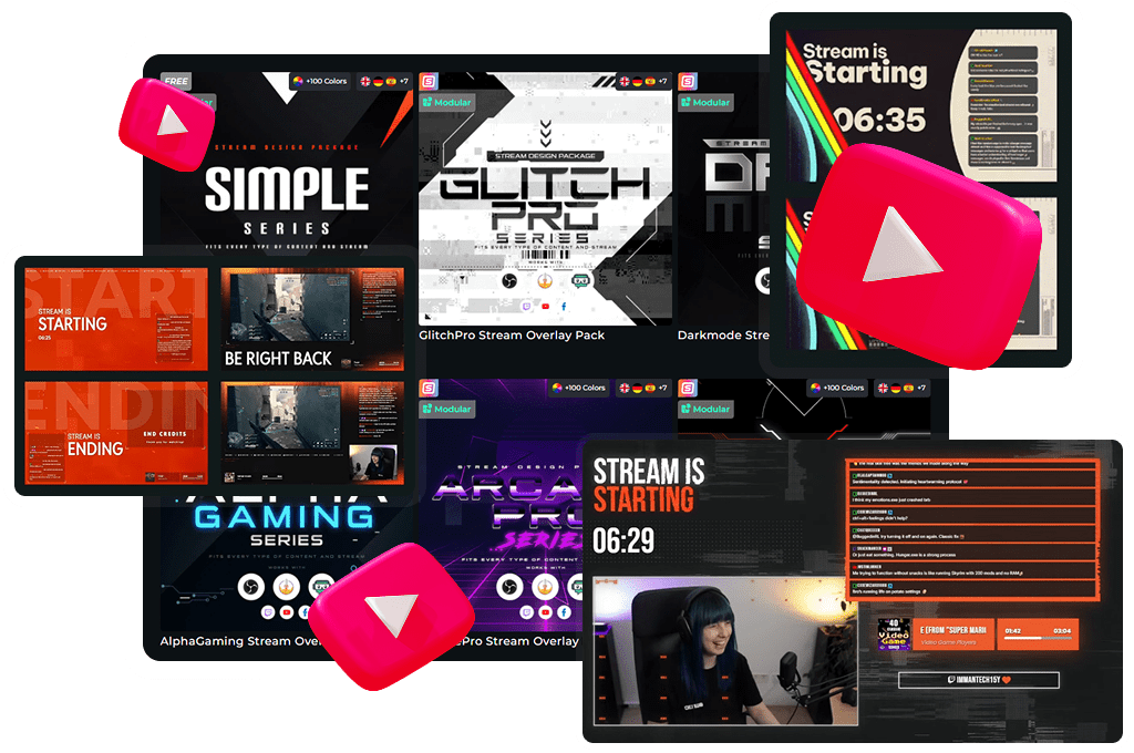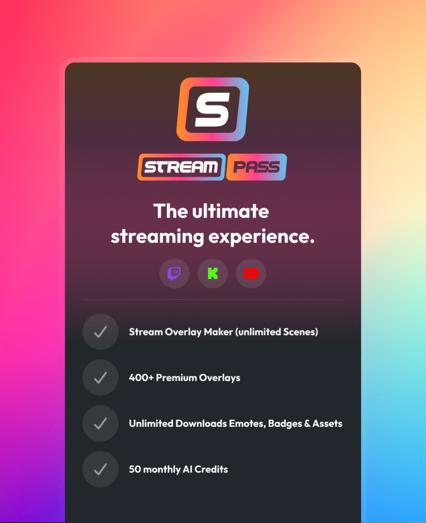 Want to change your YouTube streaming overlay more often or make your stream stand out? The Stream Pass unlocks over 100 YouTube overlays and more than 400 overlay templates. Every design is customizable, so your channel always reflects your style.