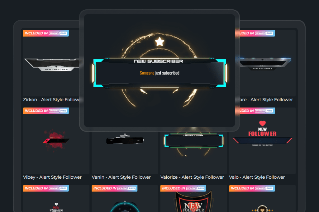 Choose from hundreds of alert designs to celebrate key moments in your YouTube stream. Subscriber alerts, super chats, donations, and more – every event feels special with over 500 animated alerts included in your YouTube overlay setup. These moments boost interaction and make your YouTube viewers feel seen.