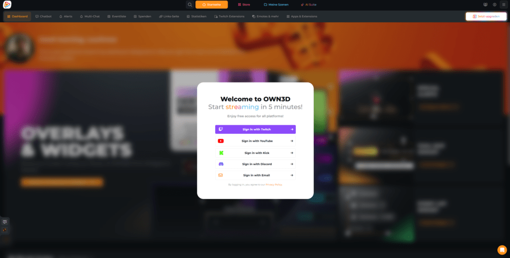 With OWN3D Pro, you simply connect your streaming platforms, whether it is Twitch, YouTube, Kick, or all three, and create a single scene where all platforms are handled together. This keeps your setup organized and reduces the need for multiple different overlays.