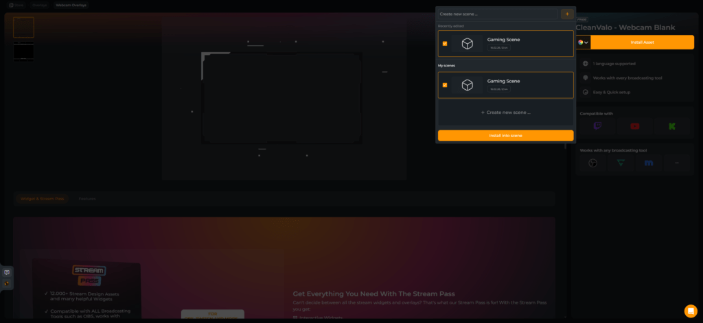 Inicia sesión en OWN3D Pro con tu plataforma preferida. En cuanto hayas iniciado sesión, haz clic en “Install Asset”.