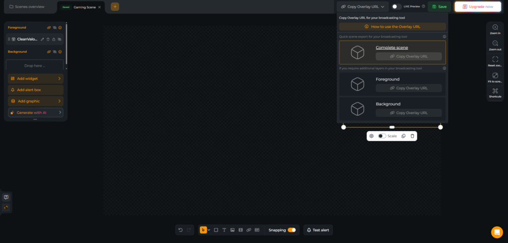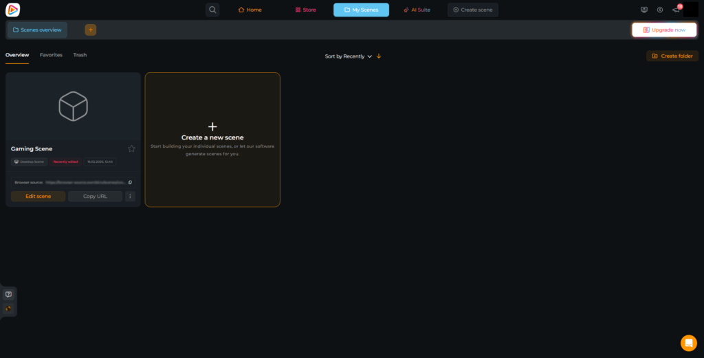 Haz clic en el botón de notificación de la parte superior para abrir tu escena con el nuevo overlay de cámara, o ve a “Mis escenas” para acceder a ella.
