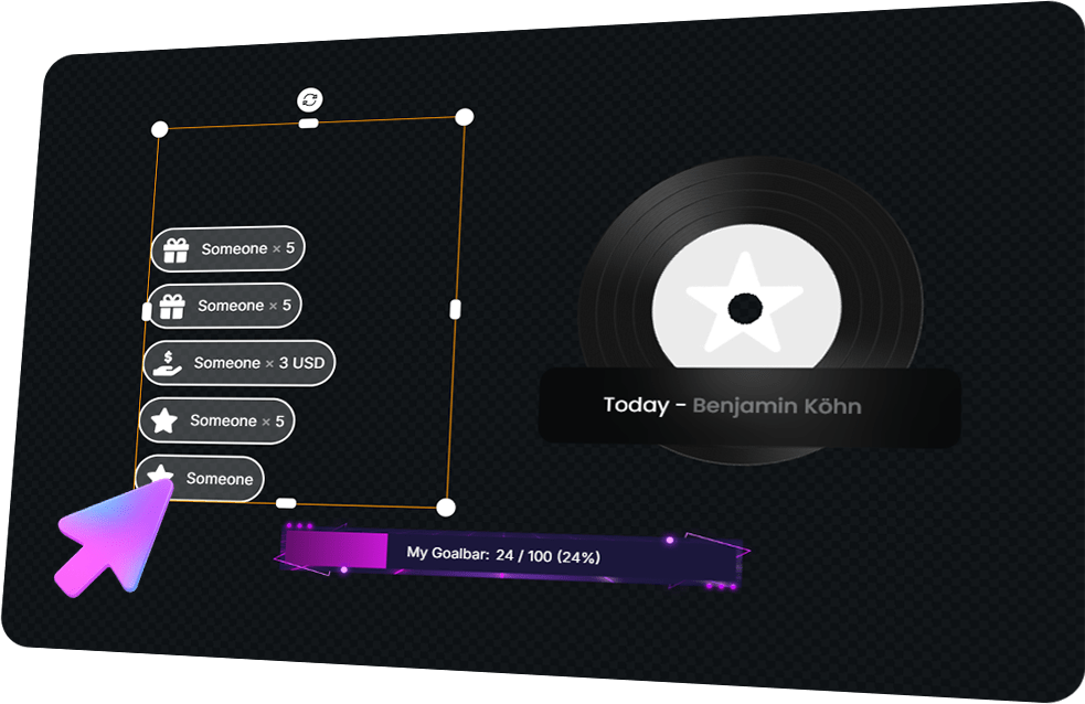 Torne seu stream mais interativo e profissional com a ampla seleção de widgets de stream do OWN3D Pro. De Lista de Eventos, Alertas, Barras de Goal, Reprodutor de Música, Chat ao Vivo e Contagens Regressivas — você encontrará tudo o que precisa para envolver sua comunidade e aprimorar seu canal.